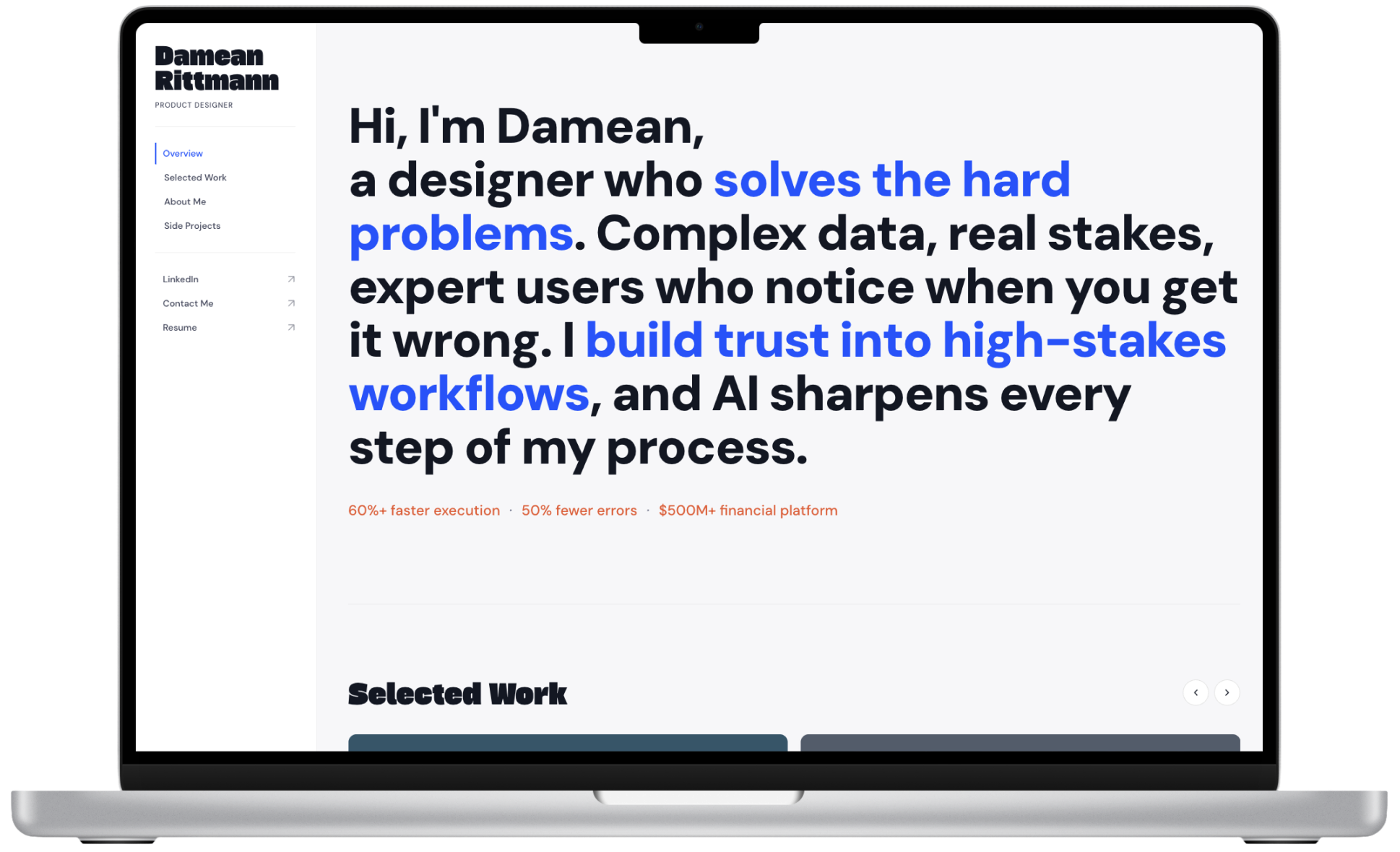 a Product Designer specializing in complex, data-heavy systems where clarity matters. I simplify hard problems, build scalable design systems, and make the teams around me faster.